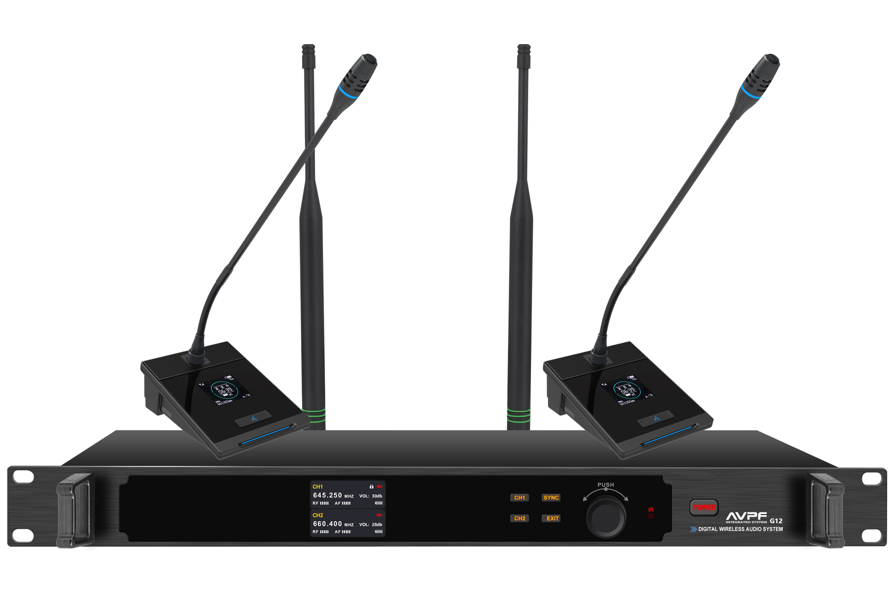 G12數(shù)字雙通道無線麥克風系統(tǒng)產品規(guī)格:u 高保真音質,無損音頻傳輸技術,48K音頻采樣頻率,20Hz~20KHz響應頻率。u 具備系統(tǒng)菜單鎖定功能,避免非管理員誤操作。u 接收機具有200組UHF可選頻道。u 工作頻率: 470~960MHz。u 射頻穩(wěn)定度:0.005%u 工作距離:≥80米(理想環(huán)境內)u 音頻壓擴:DSP數(shù)字音頻壓擴u 采樣率:48KHzu 頻率響應:50Hz~1800Hz(±3dB)u 動態(tài)范圍:95 dBu 信噪比(A計權):105 dBu 總諧波失真:≤0.8%,@1KHzu 工作溫度范圍:支持-10℃~+50℃下長時間使用u 采用1U國際標準設計,可安裝在19英寸設備機柜技術規(guī)格: